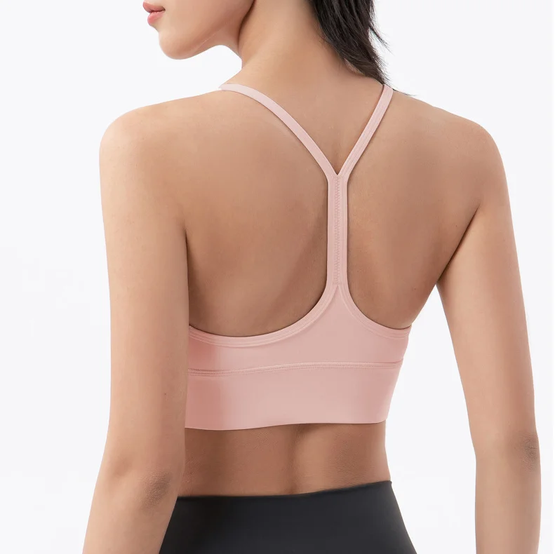 Solid Color Training Bra for Running Fitness Sports Quick-Drying and Shockproof with Y-Line Straps and Chest Pad Breathable