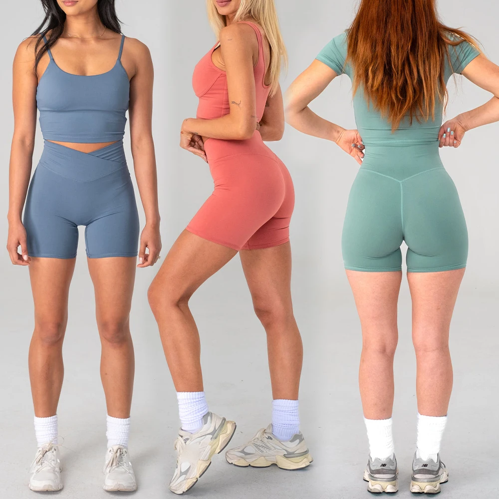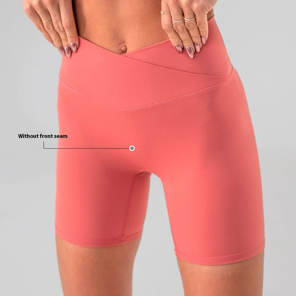 Breathable Soft Cross V Shape High Waisted Compression Workout Athletics Shorts Gym Butt Lifting Fitness Yoga Shorts