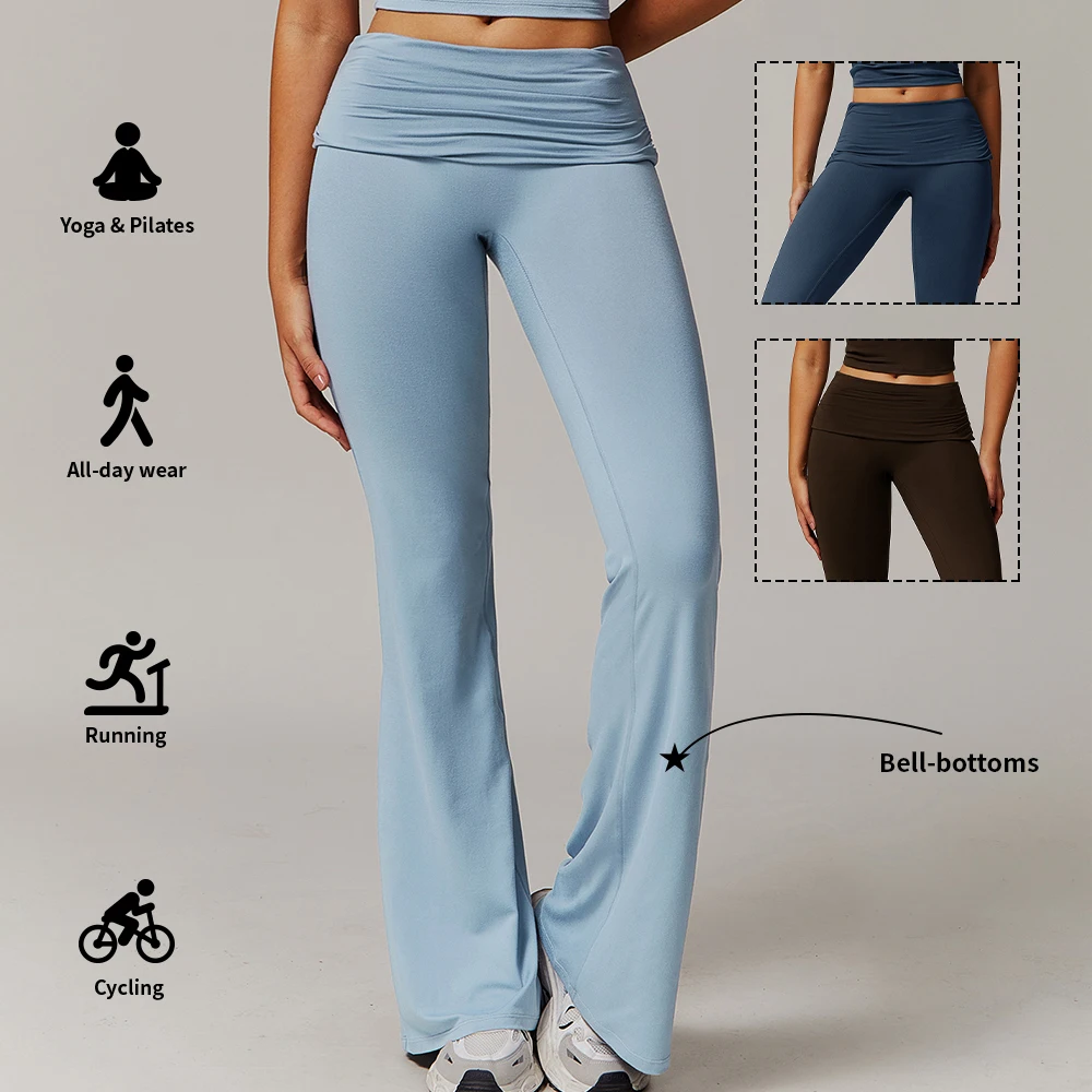 Women Nylon Fold-over Waisted Butt Lifting Yoga Leggings Tall Girl Yoga Tight Active Wear Yoga Leggings Custom Logo