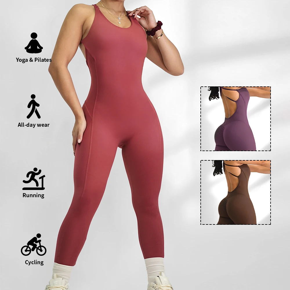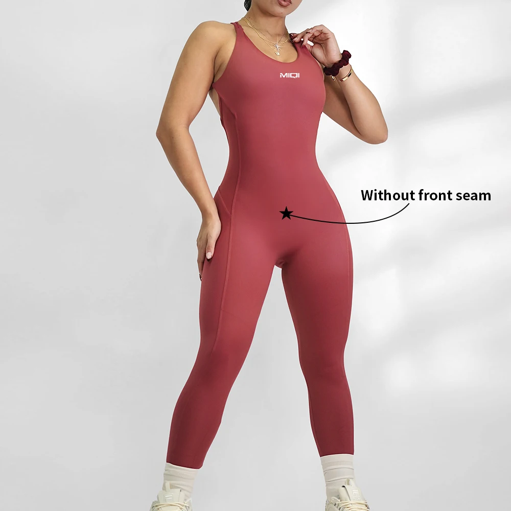 MIQI Custom Logo V Shape Scrunch Bodysuit Clothes Backless Quick Dry Sports Wear Fitness Jumpsuits for Tall Girl