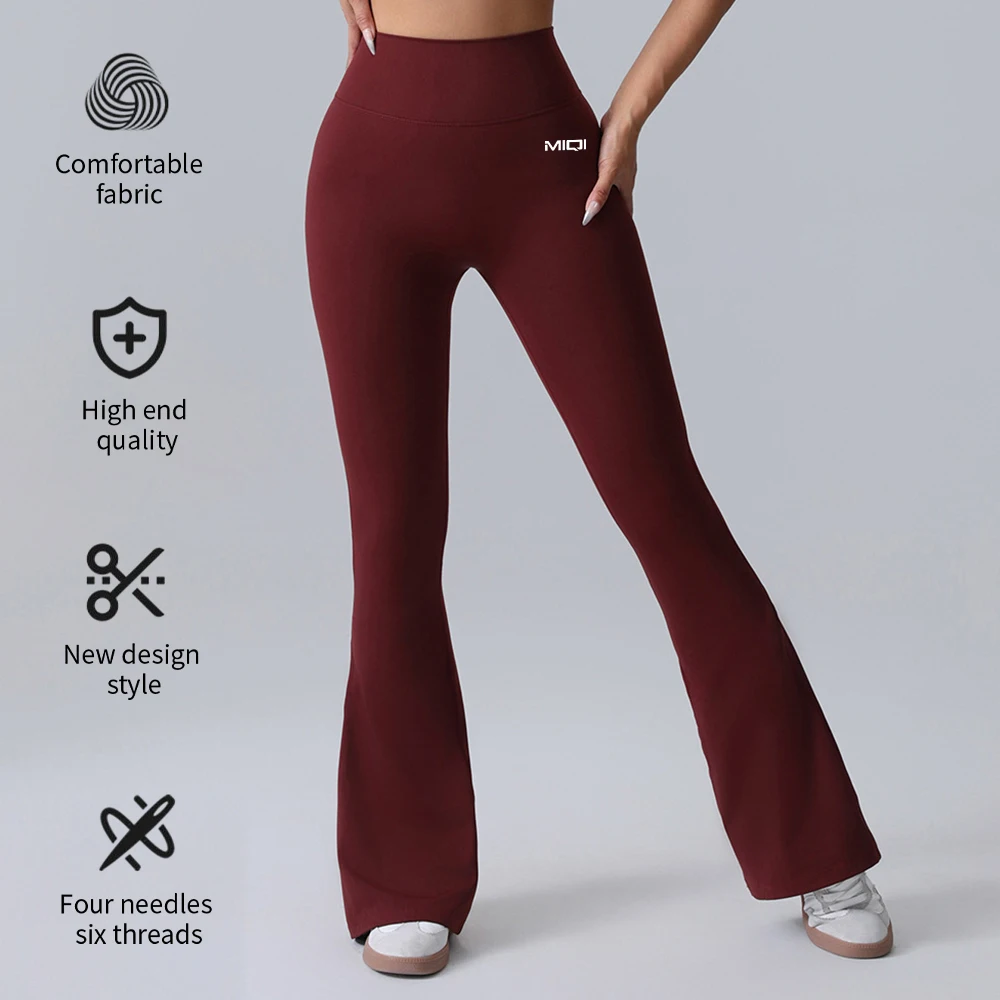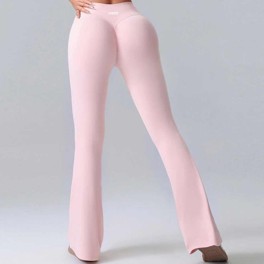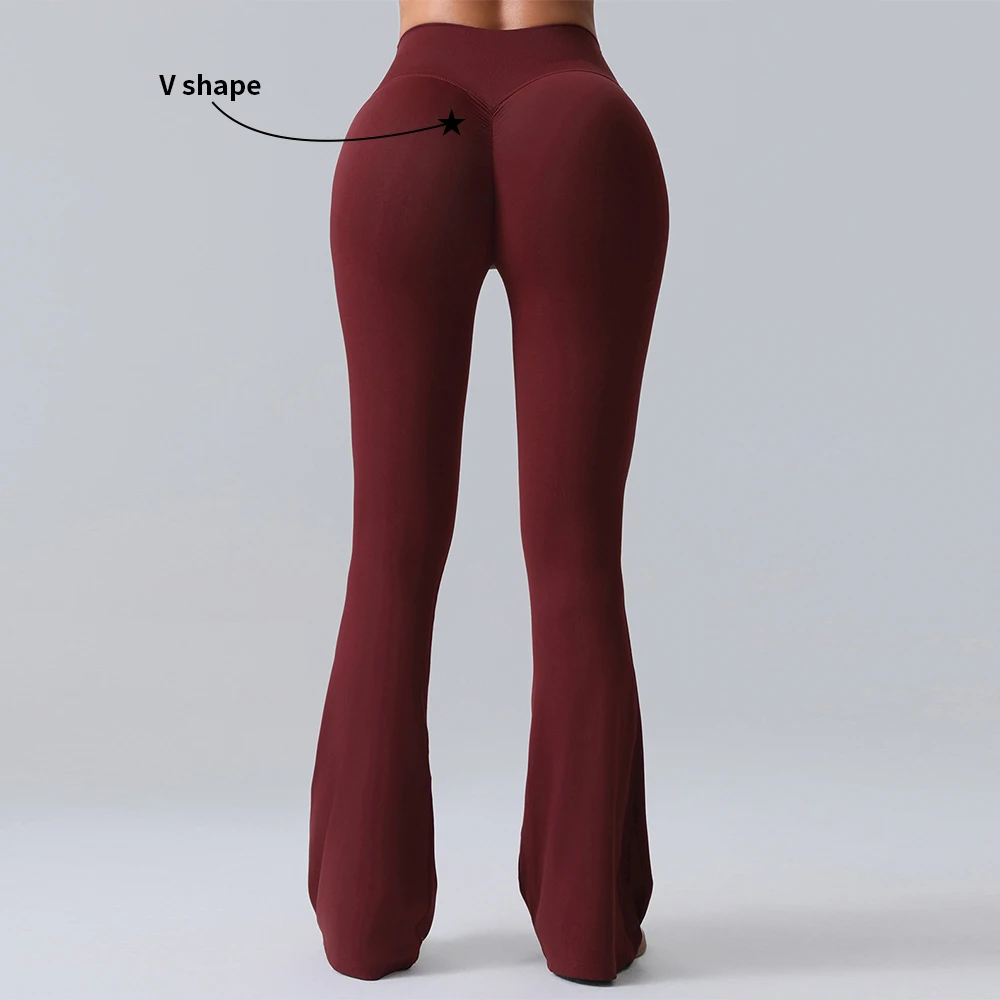 YISHENHON Recyclable Fabric Quick Dry Yoga V Waist Gym Leggings Running Workout Wide Leg Pants Flare Woman Sport Pants