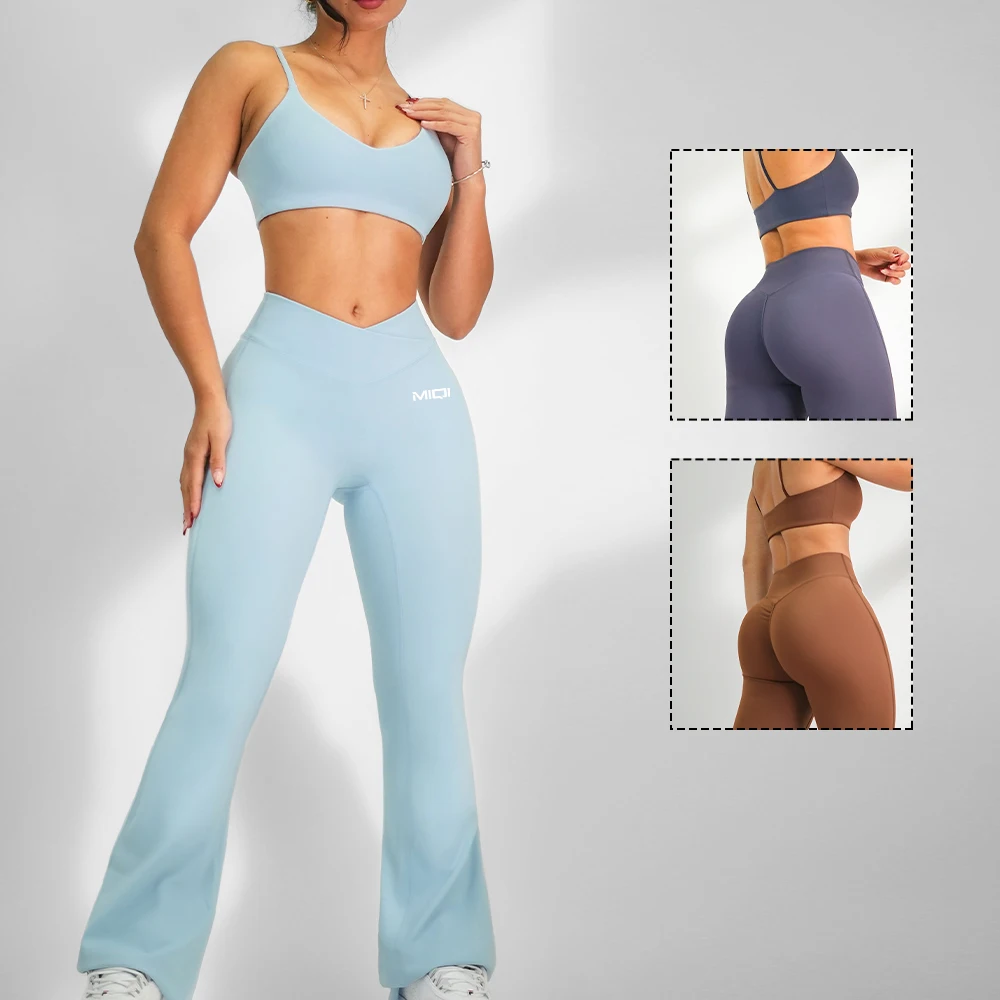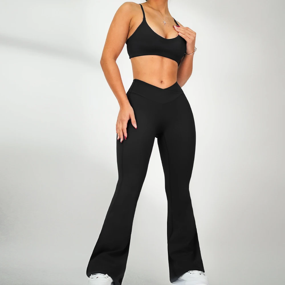 Custom LOGO Sports Bra Set Gym Pants Apparel Wear High Waisted Flared Fitness Pants Women Yoga Sets