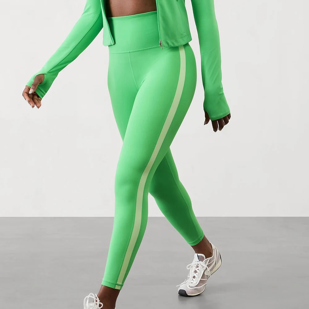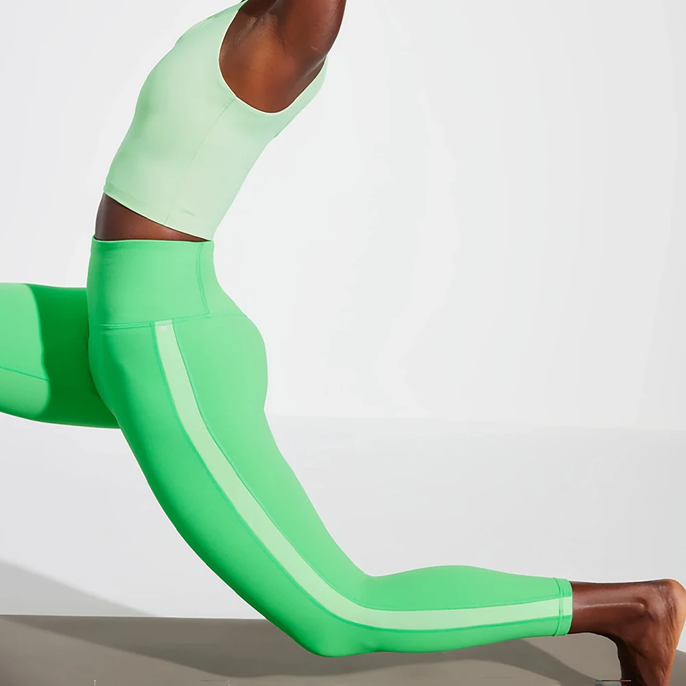 MIQI Women Nylon QUICK DRY Green Gym Leggings High Waisted Yoga Pants Color-Block Women Yoga Leggings