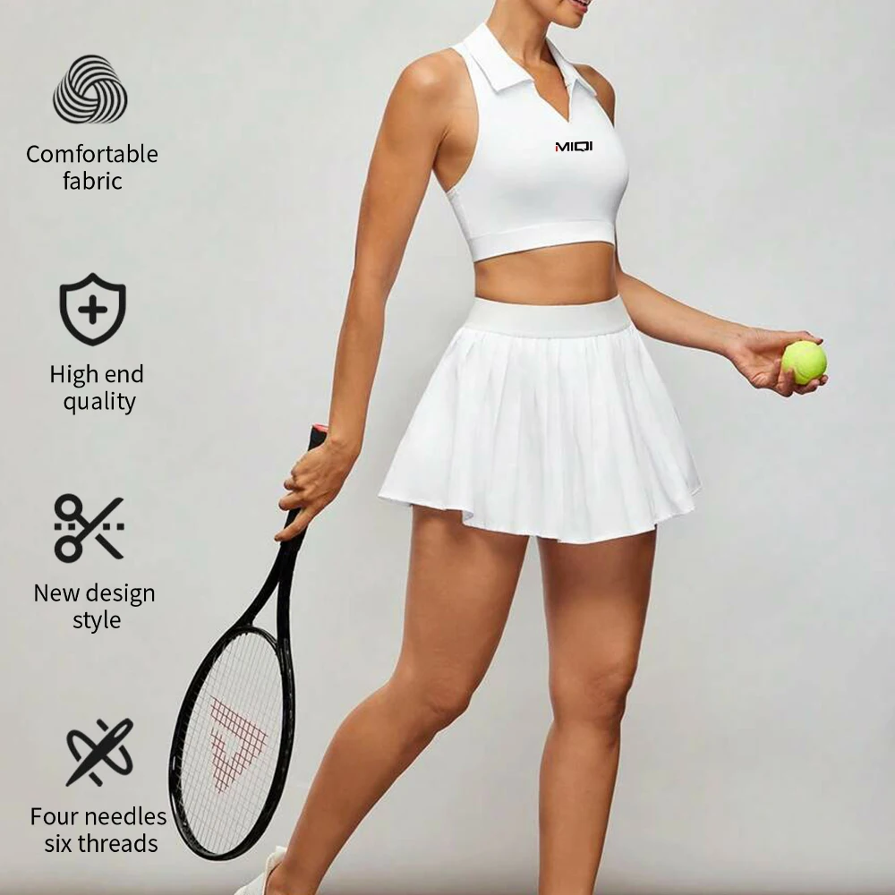 Custom Tennis V Neck T-shirts Fitness Skirts Gym Fitness Clothes Athletic Golf Clothings Tennis Skirts Sets