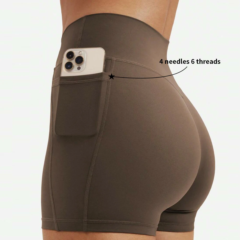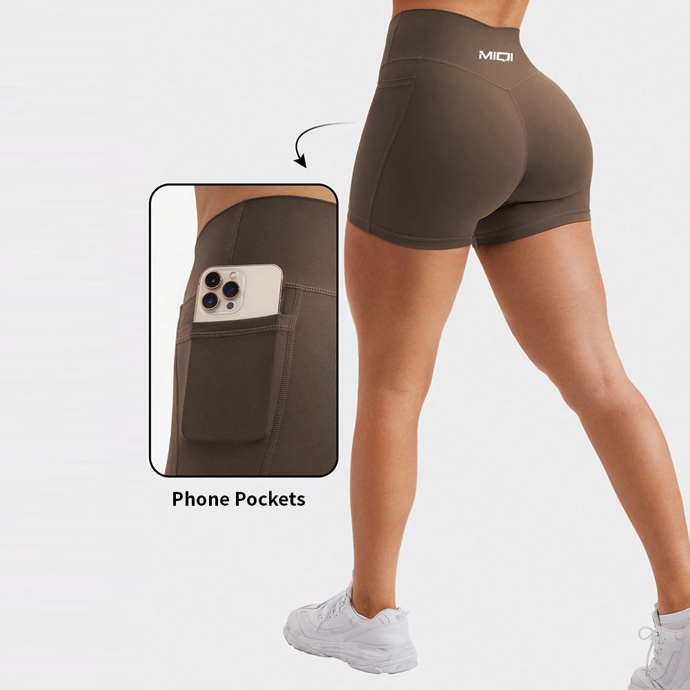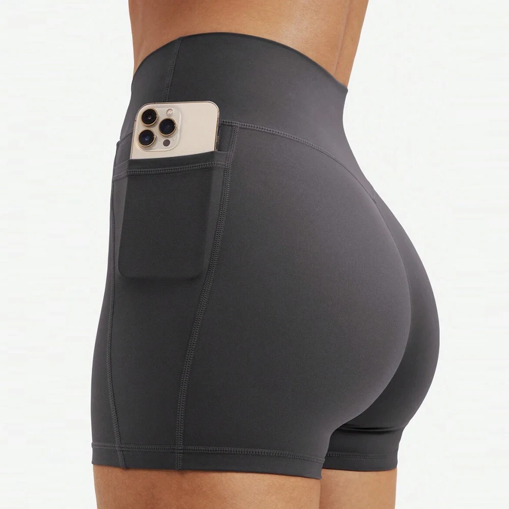 Custom Spandex Workout Running Wear High Waisted Fitness Apparel Gym Butt Lifting Yoga Shorts with Pockets