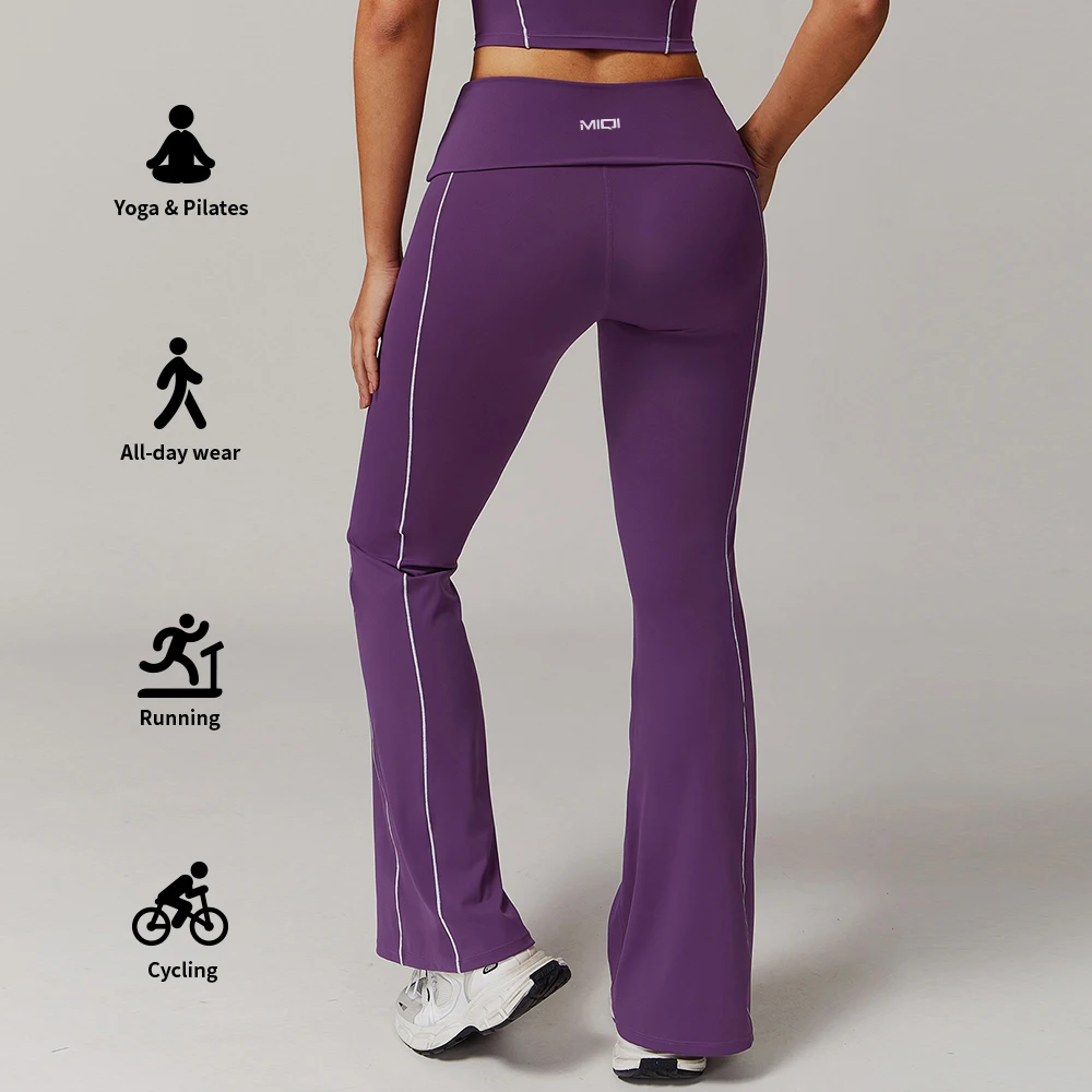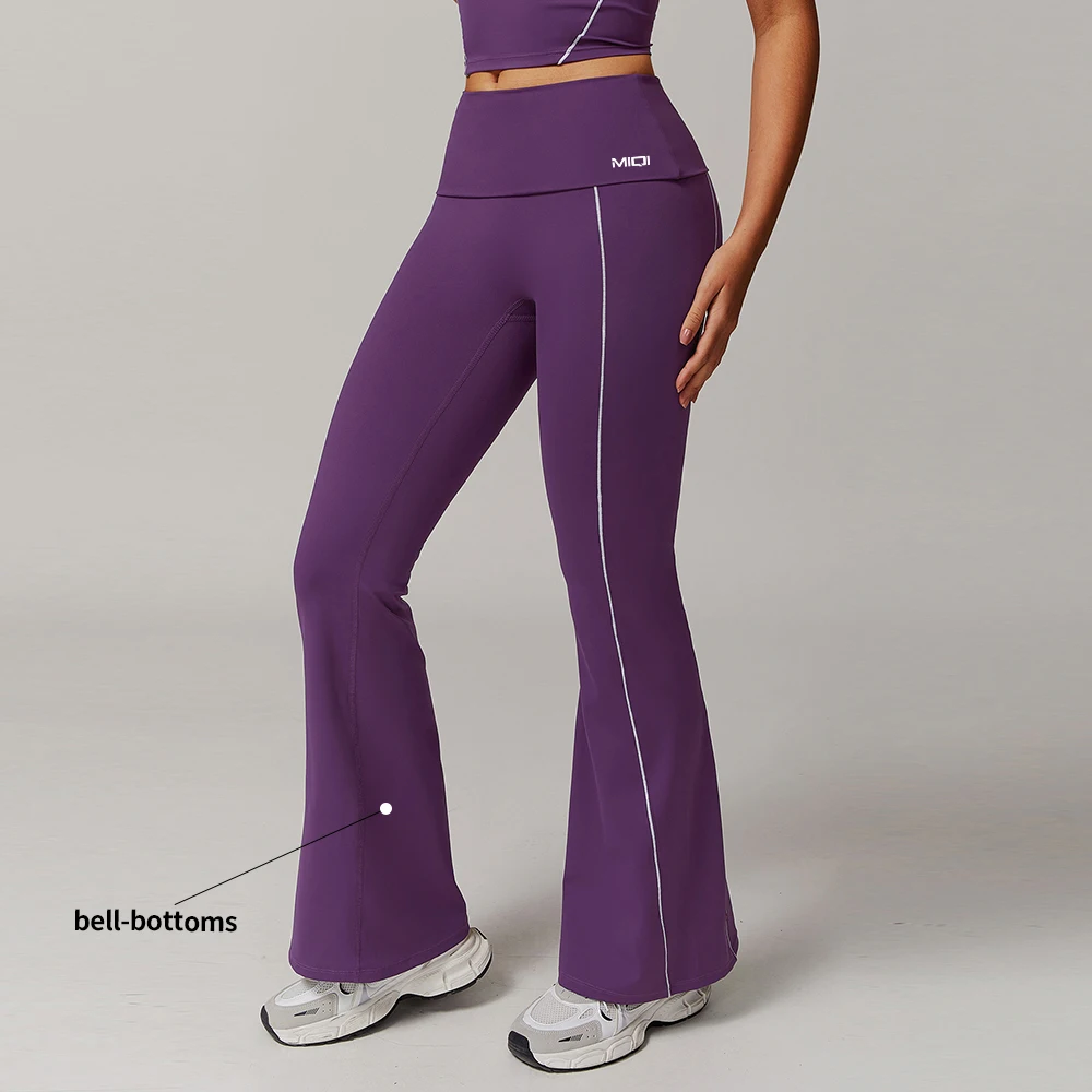YISHENHON Recyclable Fabric Quick Dry Yoga V Waist Gym Leggings Running Workout Wide Leg Pants Flare Woman Sport Pants