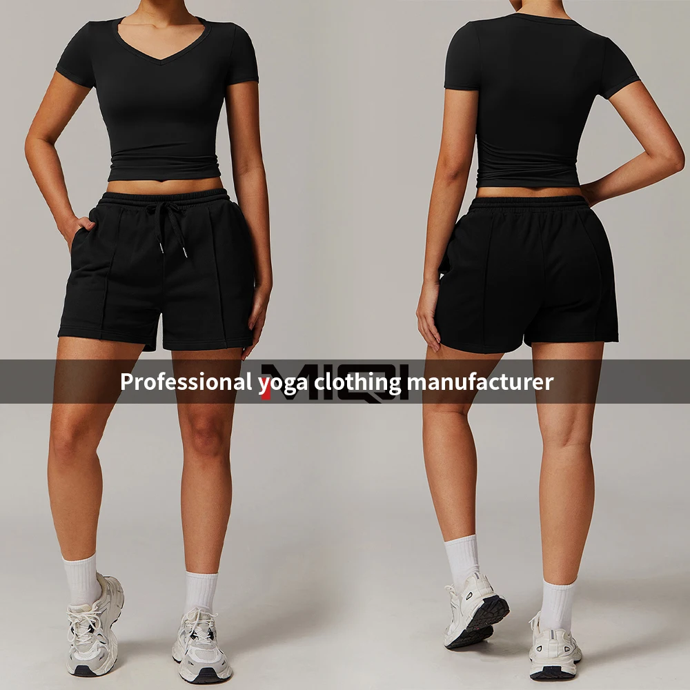 Custom Quick Dry Sample High Waisted Fitness Yoga Shorts Workout Clothing 2 Pieces Gym T-shirts Top Yoga Sets
