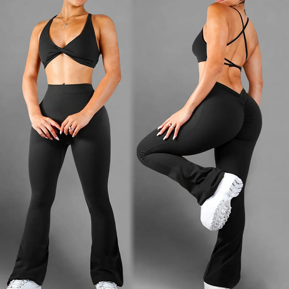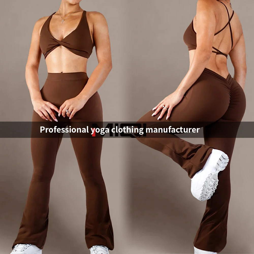 YISHENHON Recyclable Fabric Quick Dry Yoga V Waist Gym Leggings Running Workout Wide Leg Pants Flare Woman Sport Pants