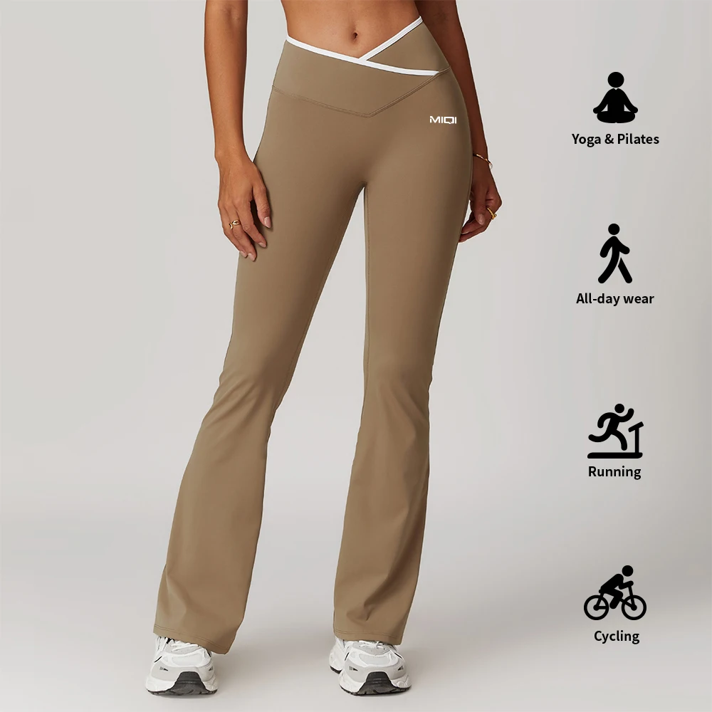 YISHENHON Recyclable Fabric Quick Dry Yoga V Waist Gym Leggings Running Workout Wide Leg Pants Flare Woman Sport Pants