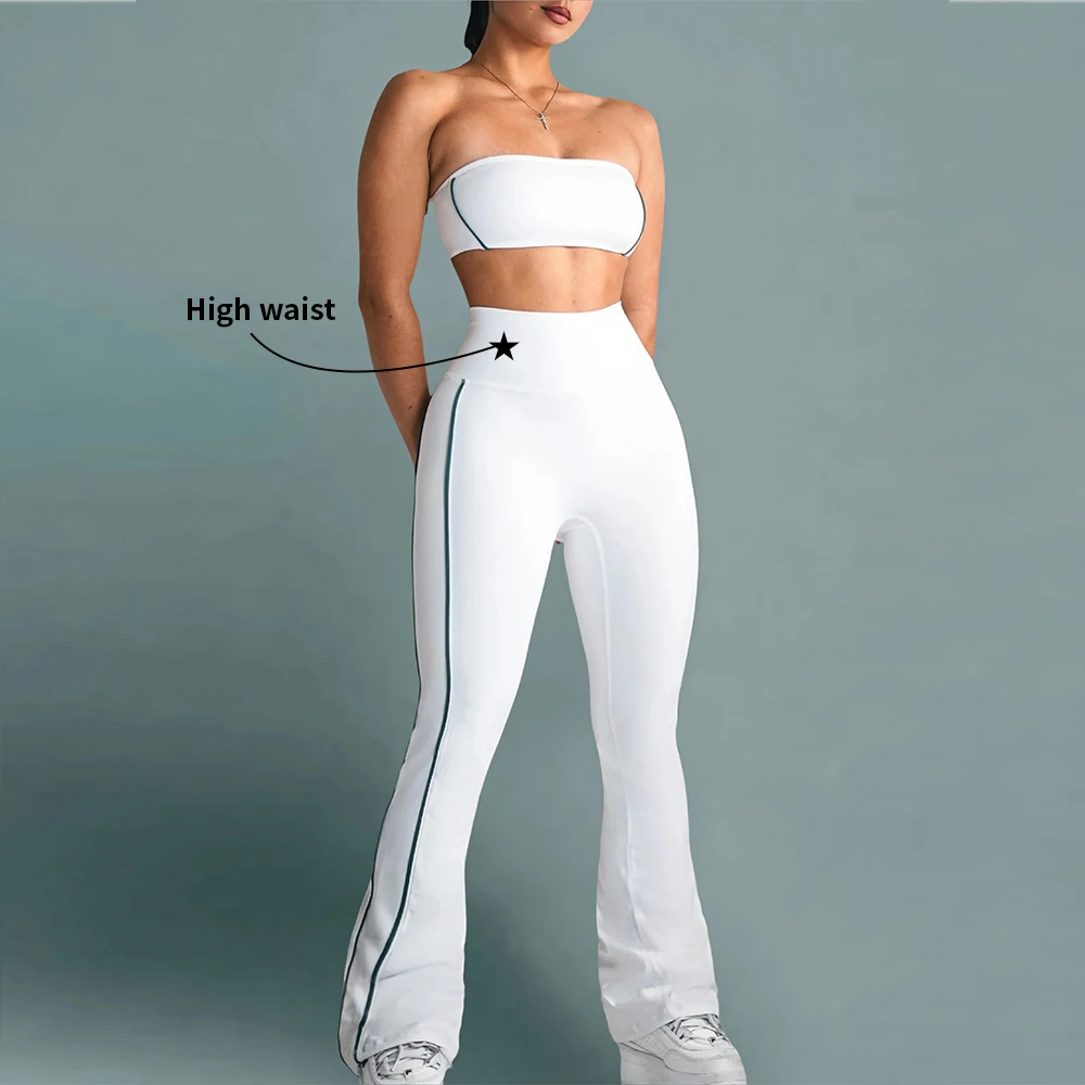 YISHENHON Recyclable Fabric Quick Dry Yoga V Waist Gym Leggings Running Workout Wide Leg Pants Flare Woman Sport Pants