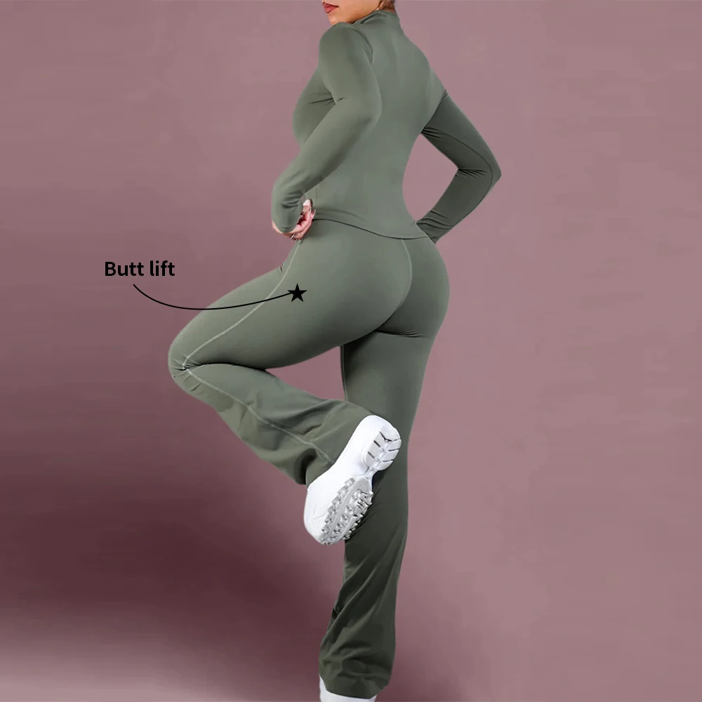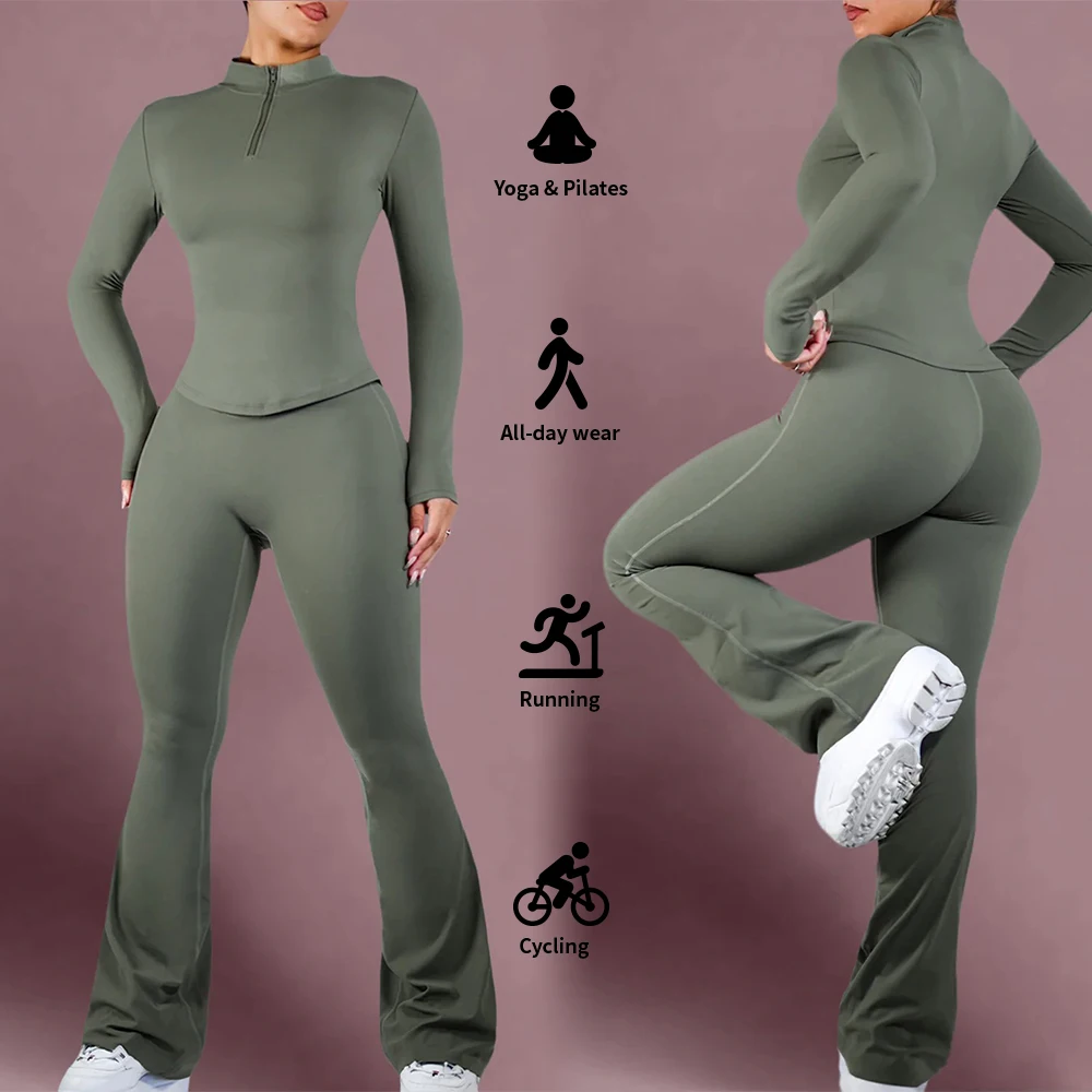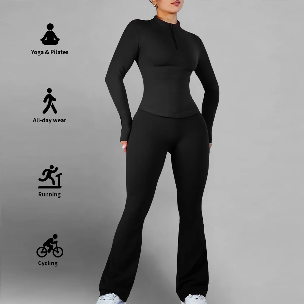 ODM Women's Slim Fit Full Sleeve Yoga Top Gym Fitness Yoga Apparel Woman Gym Leggings Workout Zipper Jacket Sets