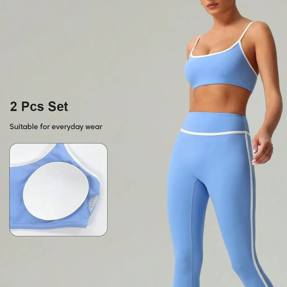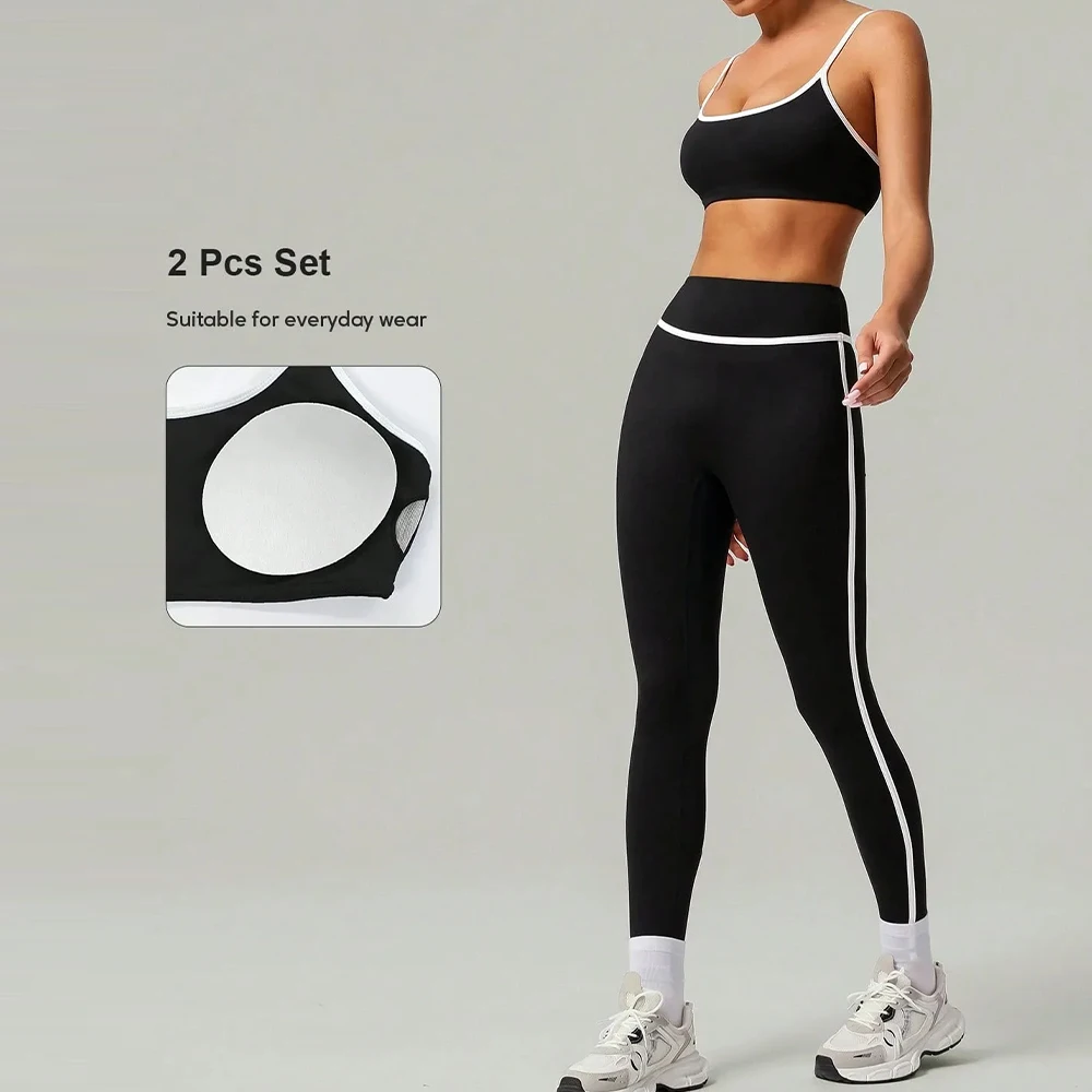 Custom LOGO Stitching Colors Sports Bra Sets High Waisted Fitness Pants Apparel Gym Fitness Sets Girl