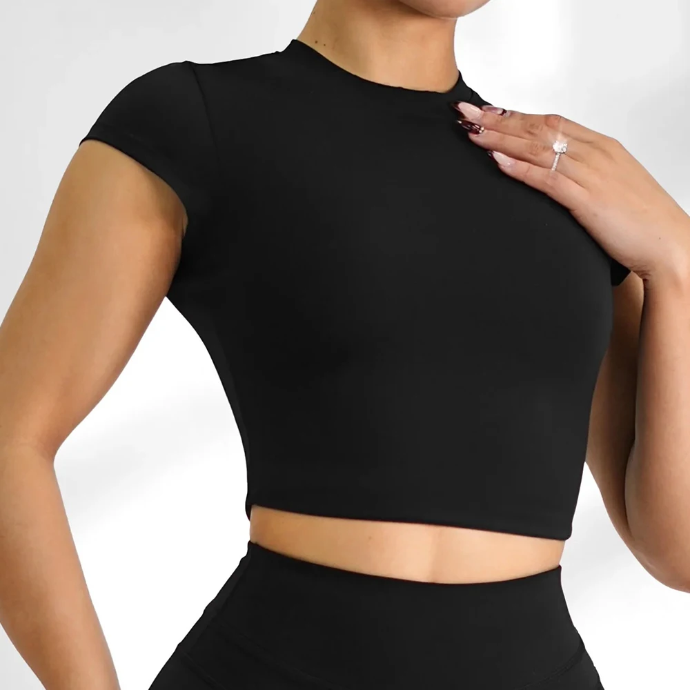 YISHENHON 2026 New Design Quick Drying Casual Tight Short Sleeve Yoga Wear Women High Intensity Running Sports Fitness T-shirt