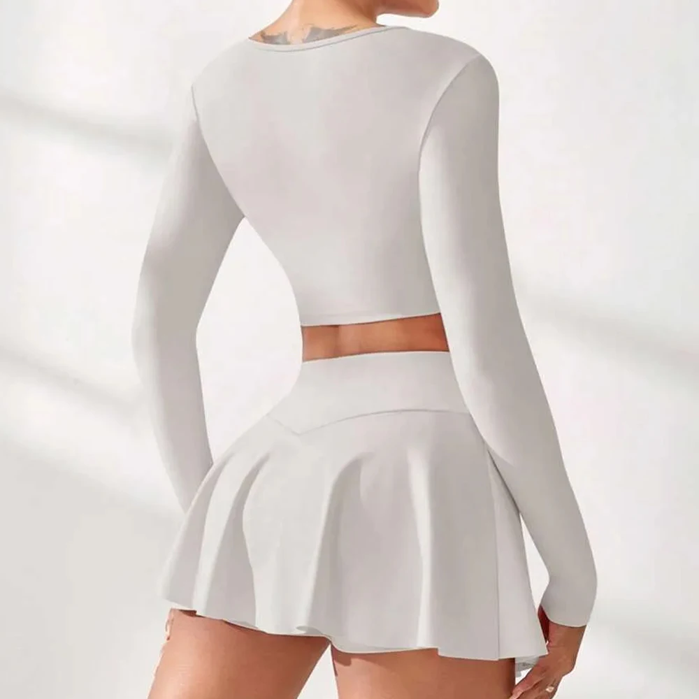 Custom Logo Women Longsleeve Tennis Top Gym Fitness Sets Skirts Golf Pickleball Gym Shorts Skirts Sets Girl