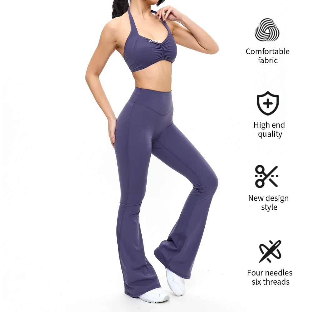 YISHENHON Recyclable Fabric Quick Dry Yoga V Waist Gym Leggings Running Workout Wide Leg Pants Flare Woman Sport Pants