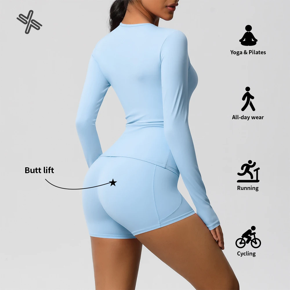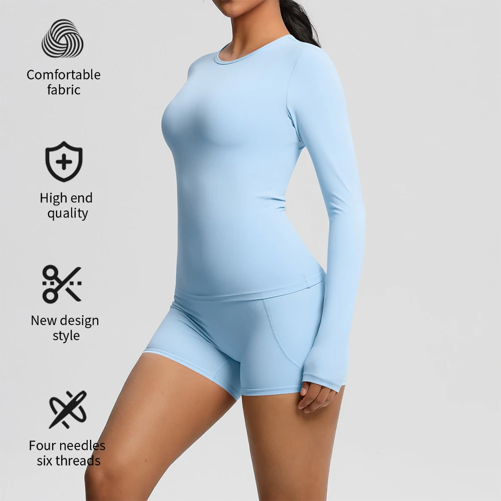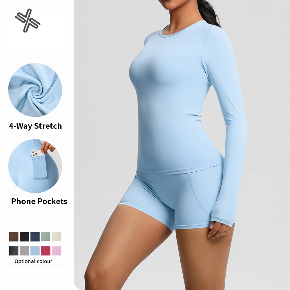 Nylon Long Sleeve Tank Top Workout Shorts Women Fitness Yoga Shorts Activewear Gym Apparel