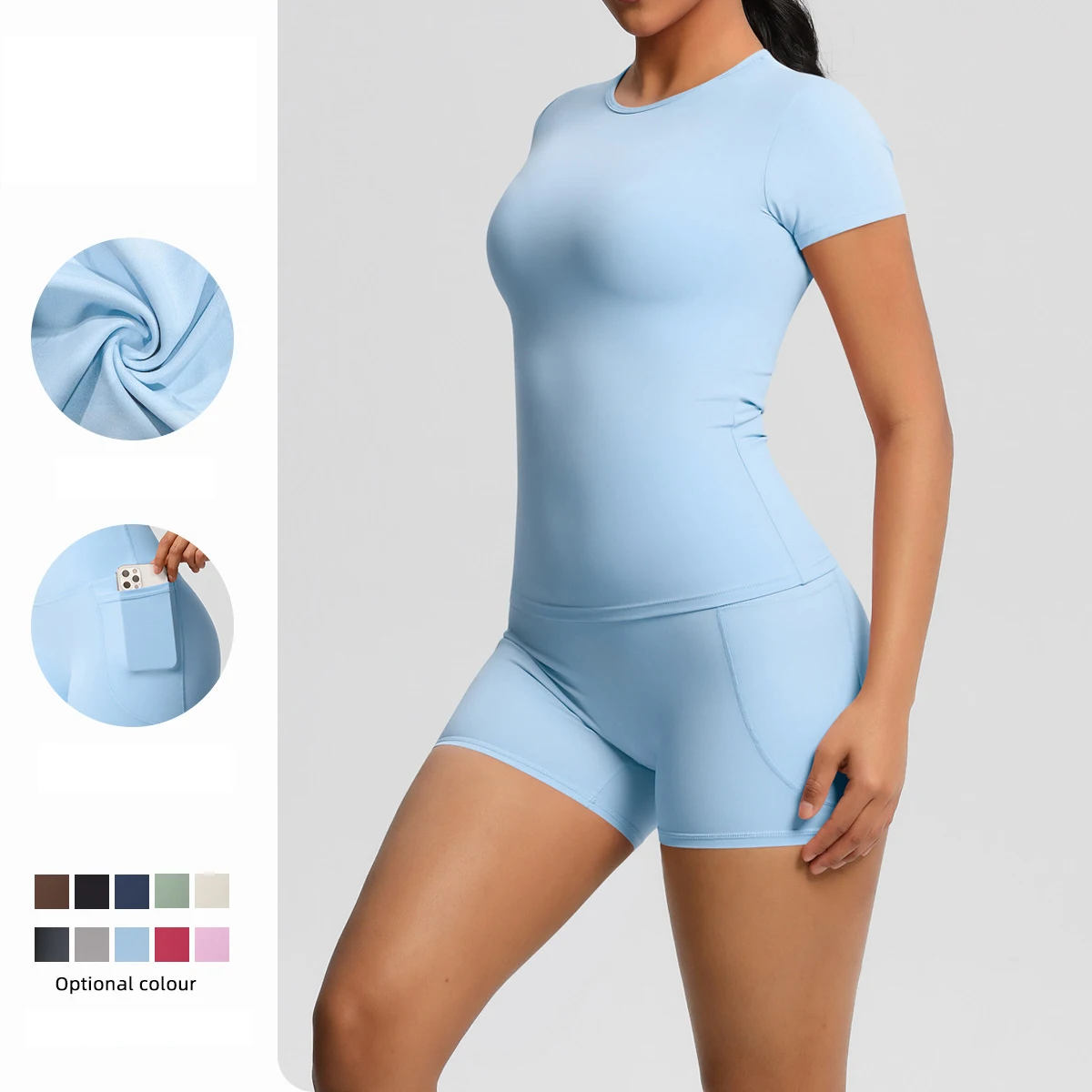 YISHENHON 2026 New Design Quick Drying Casual Tight Short Sleeve Yoga Wear Women High Intensity Running Sports Fitness T-shirt