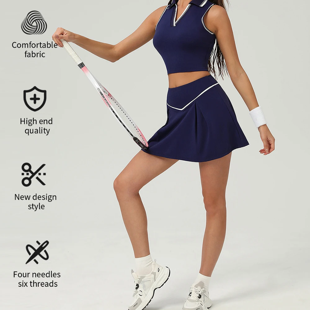 YISHENHON Women's A-Line Tennis Dress Hot Selling Wholesale Sportswear Runninng Suit with Elegant Tennis Skirt