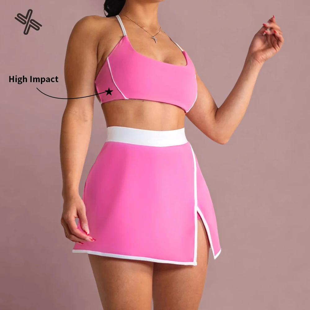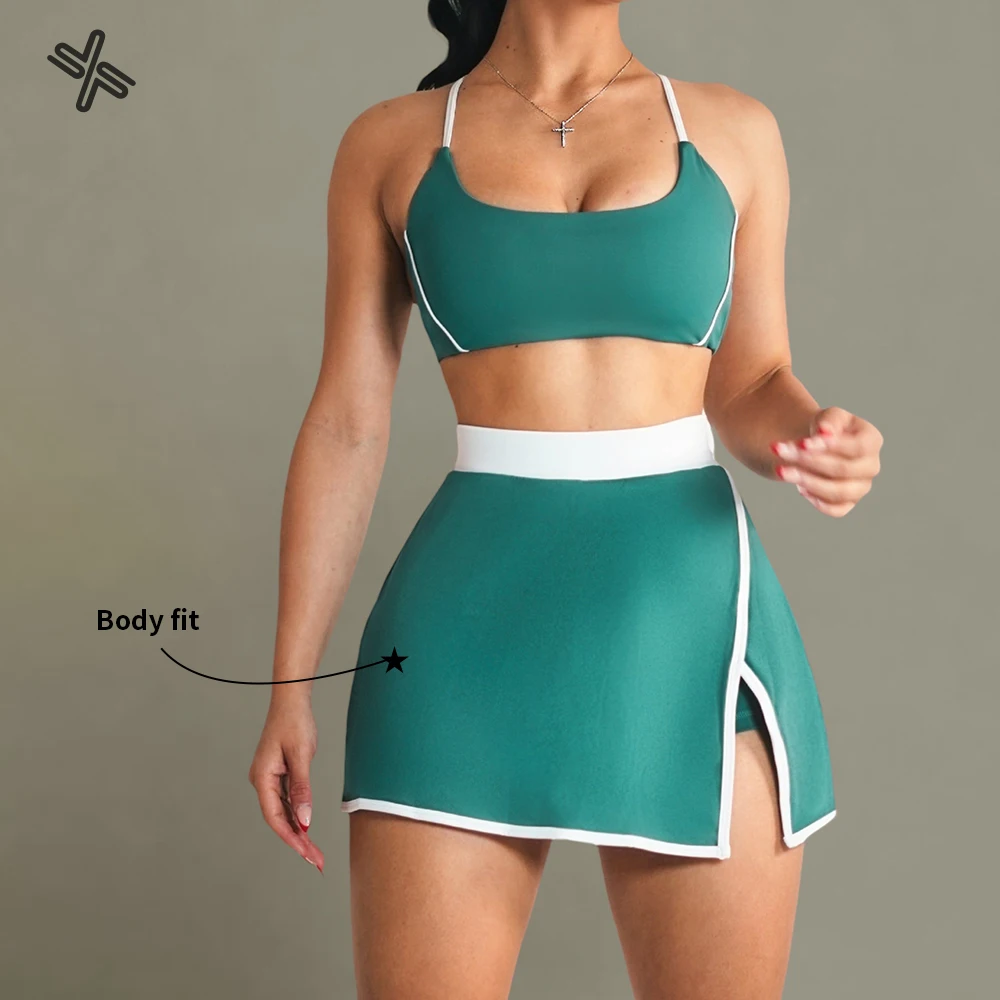 Custom Sports Bra Top 3 Pieces Gym Fitness Shorts Tennis Exercise Skirts Women's Golf Wear Skirts