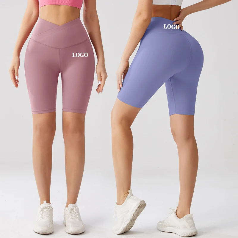 OEM High Waisted Scrunch Butt Lift Yoga Shorts Women Custom Logo Fitness Sport Workout Gym Biker Made Fabric Silk Spandex
