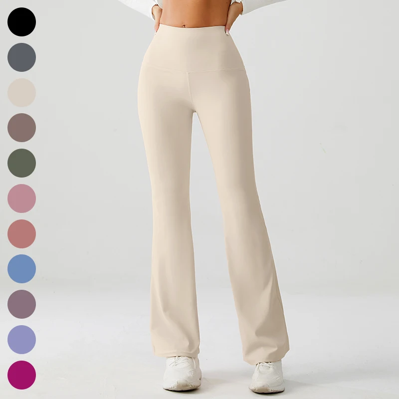 YISHENHON Recyclable Fabric Quick Dry Yoga V Waist Gym Leggings Running Workout Wide Leg Pants Flare Woman Sport Pants