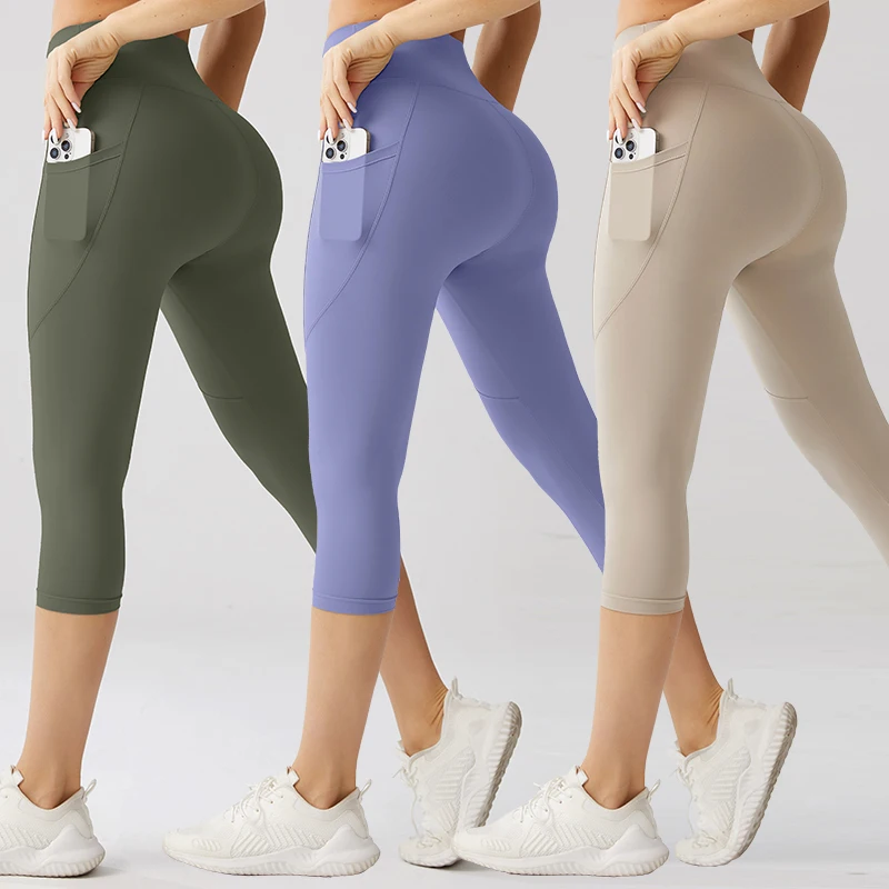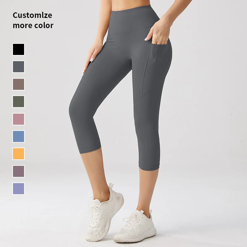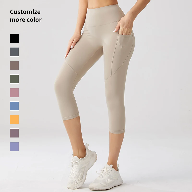 Customized New Design Capri Trousers High Waist Print 75% Nylon 25% Spandex Leggings Casual Style Seamed Knitted Fabric Logo