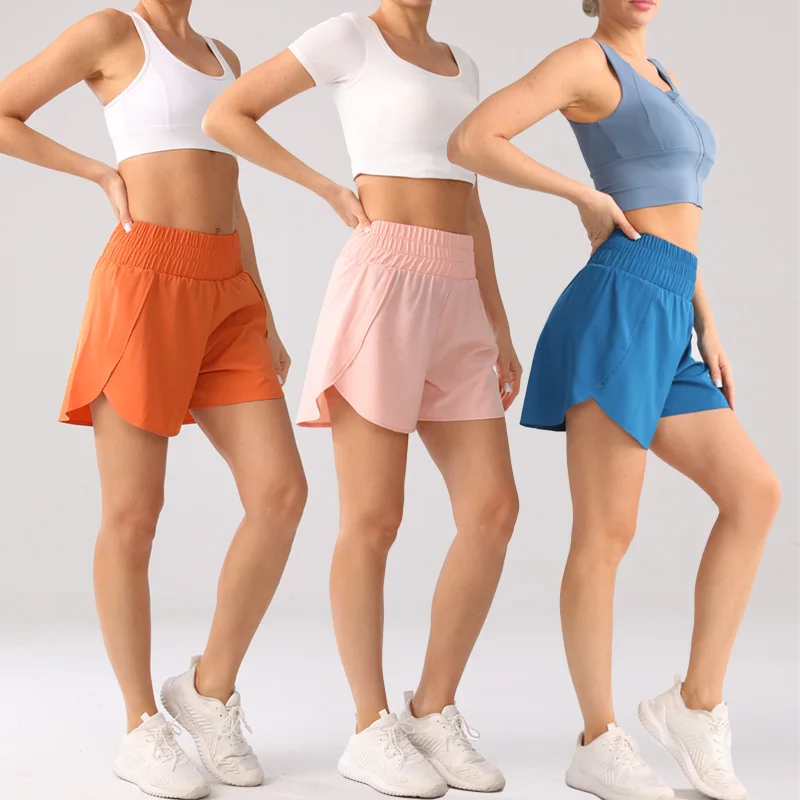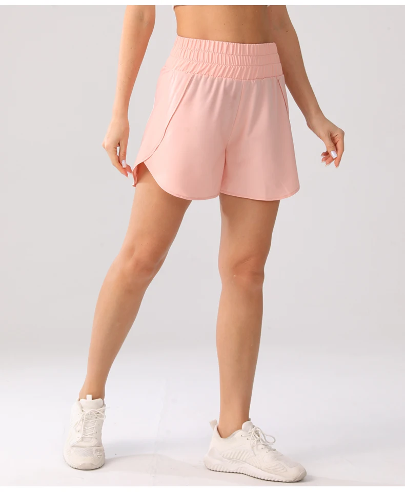 Luckpanther Cozy Women's High Waist Running Shorts Stretchy Training Pants With Yoga Tummy Control Tennis Shorts Inner Pockets