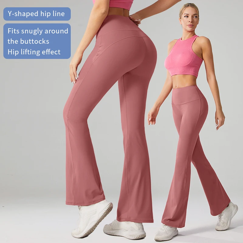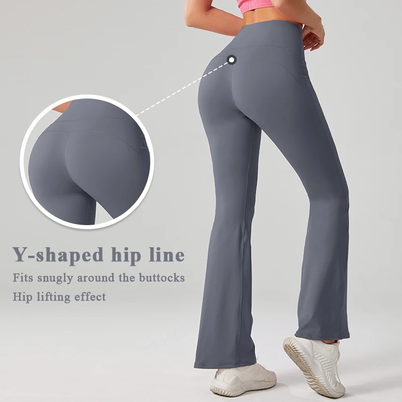 YISHENHON Recyclable Fabric Quick Dry Yoga V Waist Gym Leggings Running Workout Wide Leg Pants Flare Woman Sport Pants