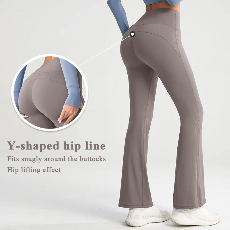 YISHENHON Recyclable Fabric Quick Dry Yoga V Waist Gym Leggings Running Workout Wide Leg Pants Flare Woman Sport Pants