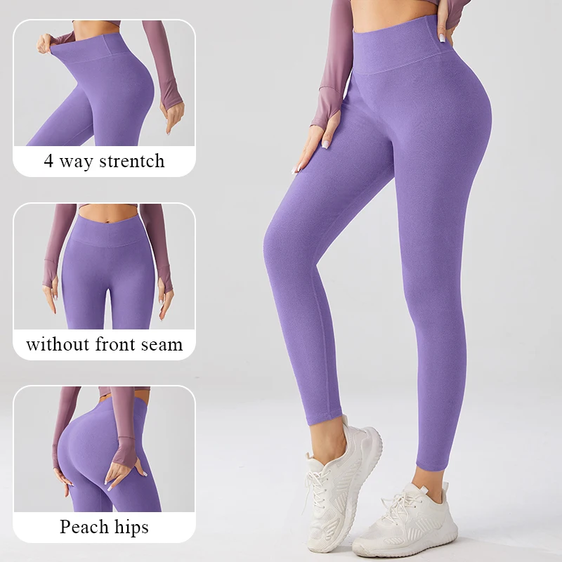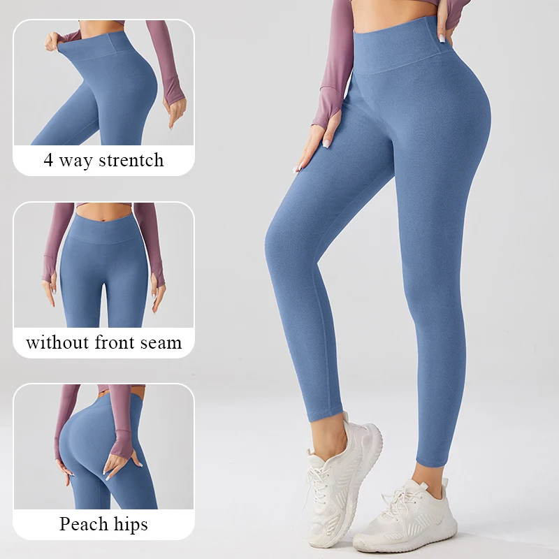 Women's High Waist Thick Polyester Warm Winter Yoga Leggings With Pocket Elastic Waist Print Thermal Leggings