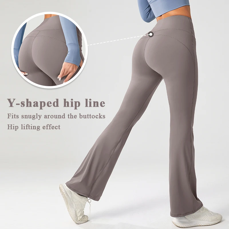 YISHENHON Recyclable Fabric Quick Dry Yoga V Waist Gym Leggings Running Workout Wide Leg Pants Flare Woman Sport Pants