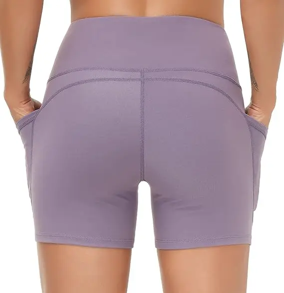 Dragon Fit Women's High Waist Yoga Shorts With 2 Side Pockets Breathable Knitted Fabric Tummy Control for Running & Home Workout