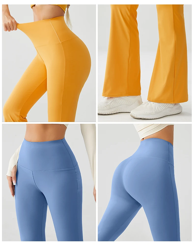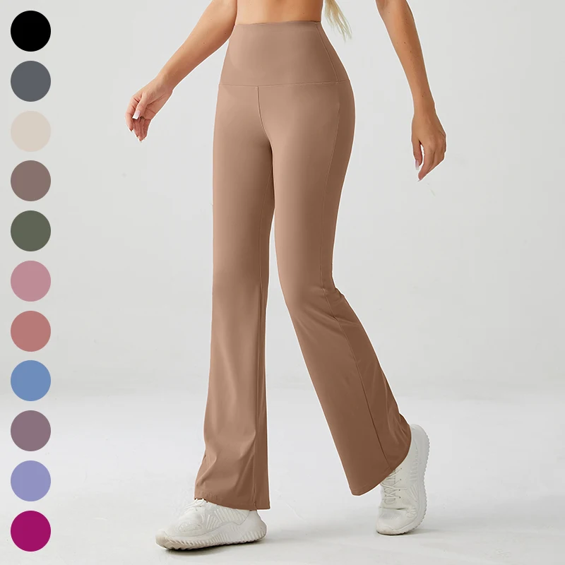 New Arrival Nude Sports Leggins Women Fitness Solid Naked High Waist Bell-bottoms Skin Friendly Breathable Casual Yoga Pants