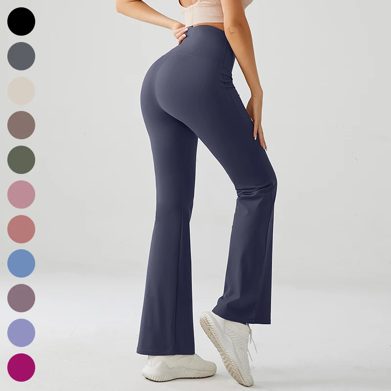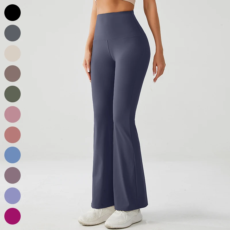 High Waisted Sustainable Flared Jogging Sports Leggings Solid Color Yoga Leggings With Elastic Waist Closure