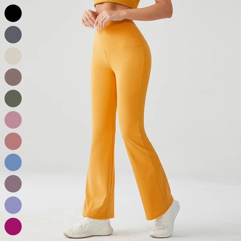 Custom Fitness Solid Color Soft Tummy Control Sport Gym Wear High Waisted Wide Leg Flare Butt Lift Yoga Leggings for Women
