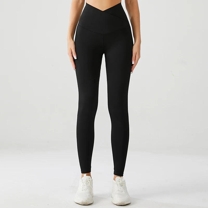 Custom Fitness Comfortable Support Soft Seamless Silk Non-see Through V Cut Shape Yoga Leggings Pants for Women Girls