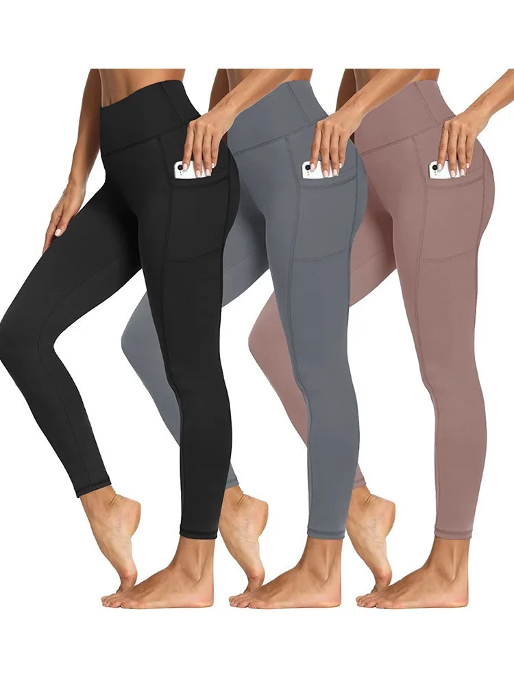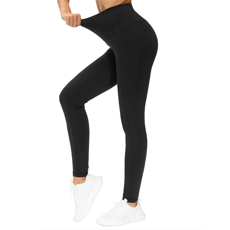 Wholesale Custom High Waisted Sports Workout Yoga Pants Leggings for Women Soft Polyester Gym Fitness Leggings With Pocket