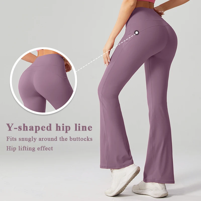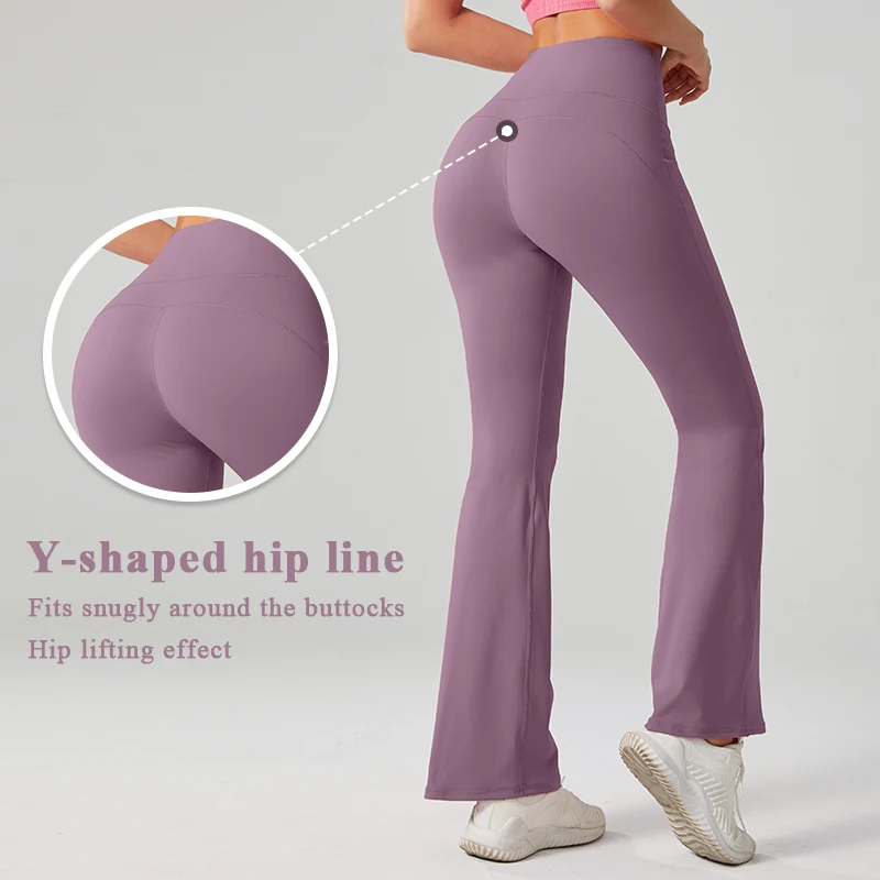 YISHENHON Recyclable Fabric Quick Dry Yoga V Waist Gym Leggings Running Workout Wide Leg Pants Flare Woman Sport Pants