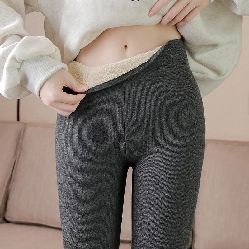 New Winter Lambskin Cashmere Pants Female Leggings Warm Women Pants Skinny Thick Velvet Wool Fleece Leggins Trousers