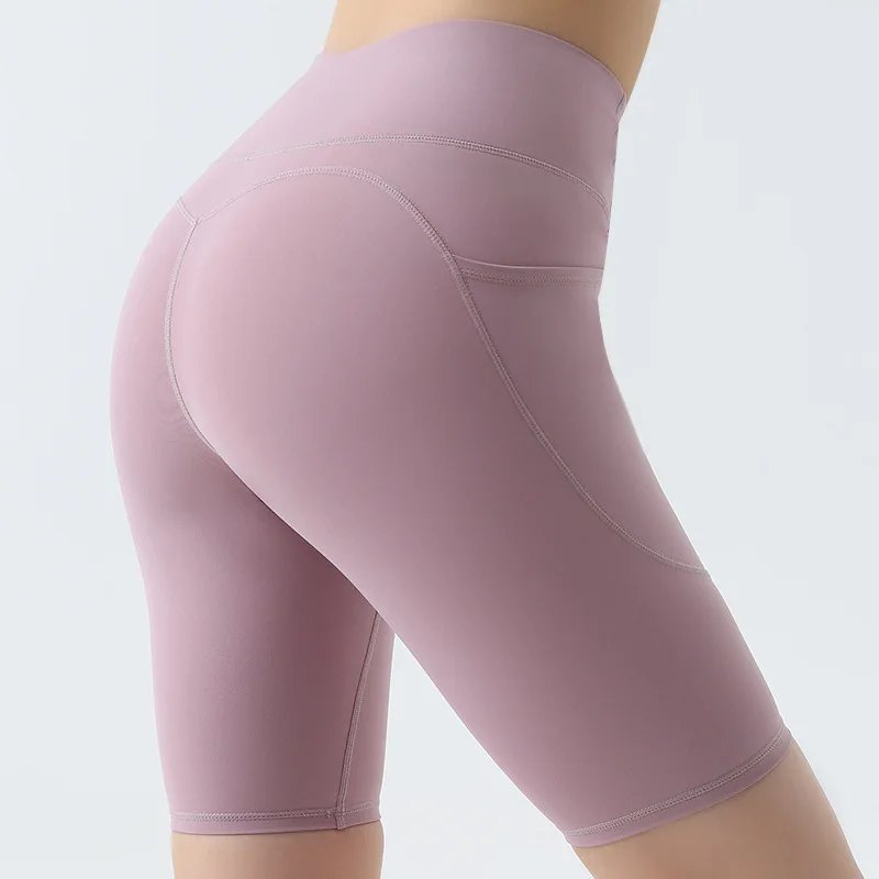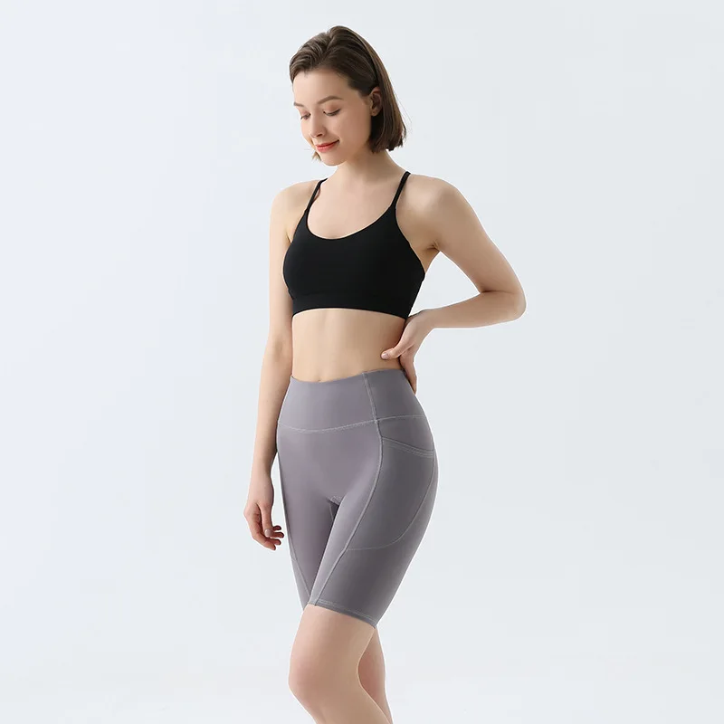 Wholesale Yoga Shorts Running Sports Short Leggings Elastic High Waist Butt Lifting Workout Yoga Shorts With Hide Pockets