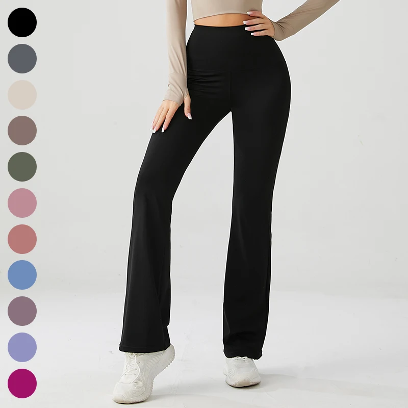 YISHENHON Recyclable Fabric Quick Dry Yoga V Waist Gym Leggings Running Workout Wide Leg Pants Flare Woman Sport Pants