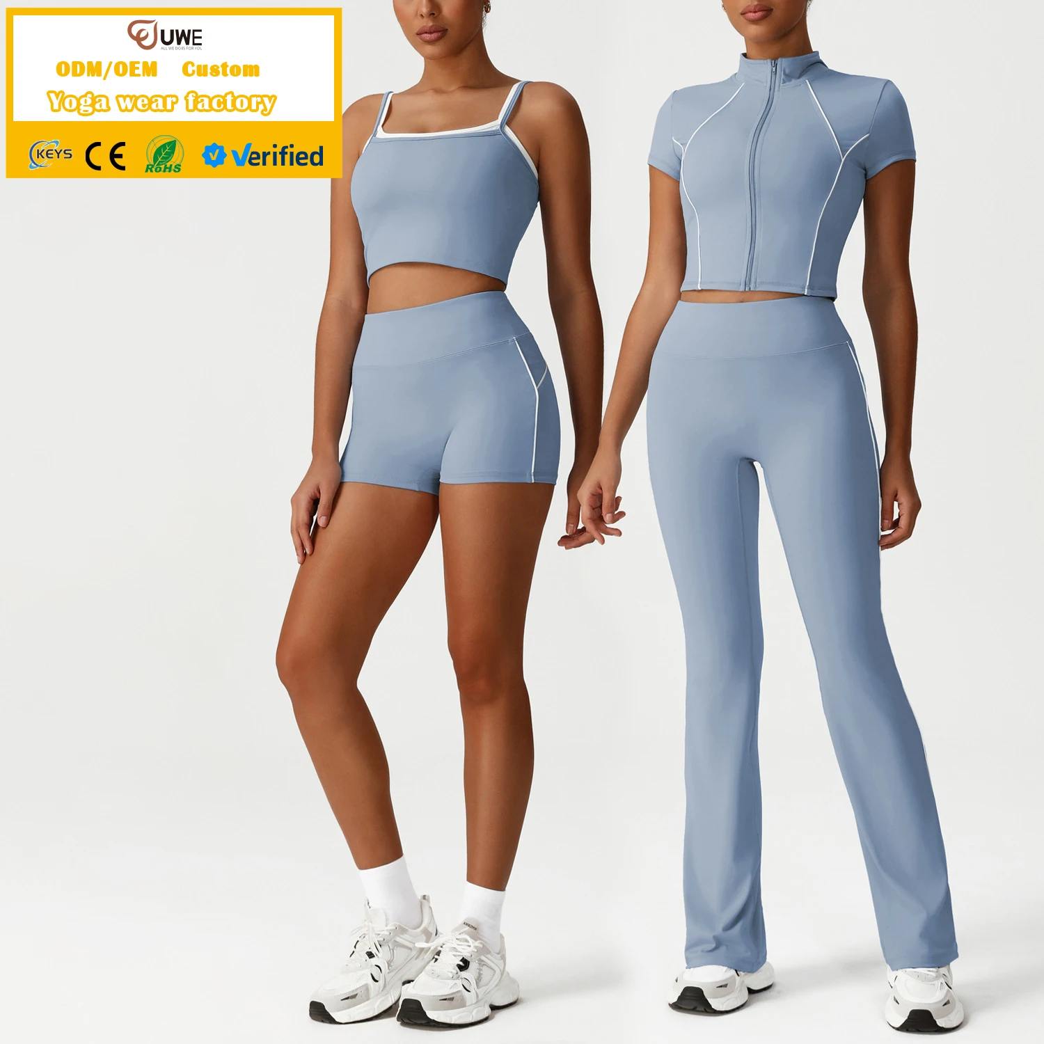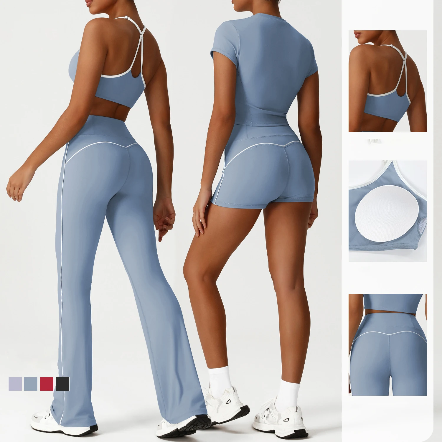 Custom High Quality 6 Piece Fitness Clothing Sportswear Gym Leggings Activewear Sports Shorts Bra Women Workout Yoga Sets