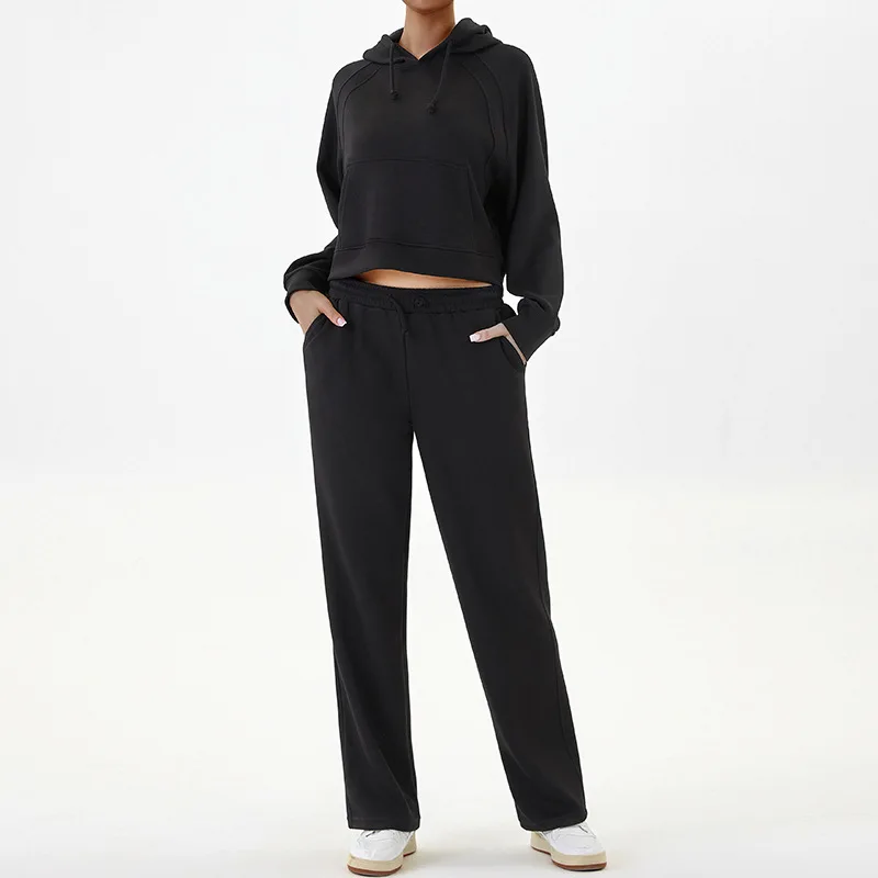 High Quality Custom Two Pieces Crop Sweatsuit Jogger Suit Tracksuit Set for Women
