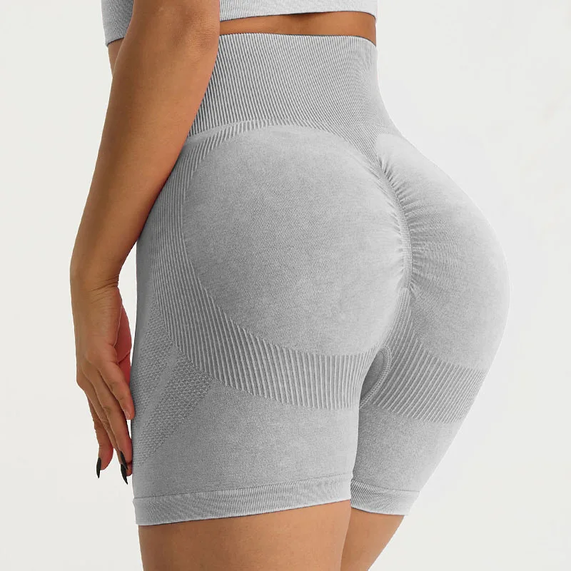 Custom Logo Wash Acid Frosted Scrunch Butt Shorts High Waist Tummy Control Quick Drying Sport Fitness Yoga Shorts