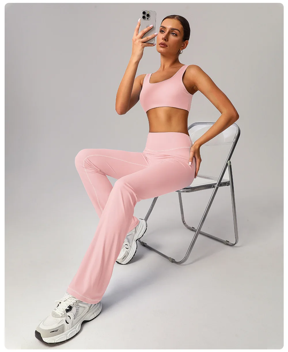 YISHENHON Recyclable Fabric Quick Dry Yoga V Waist Gym Leggings Running Workout Wide Leg Pants Flare Woman Sport Pants