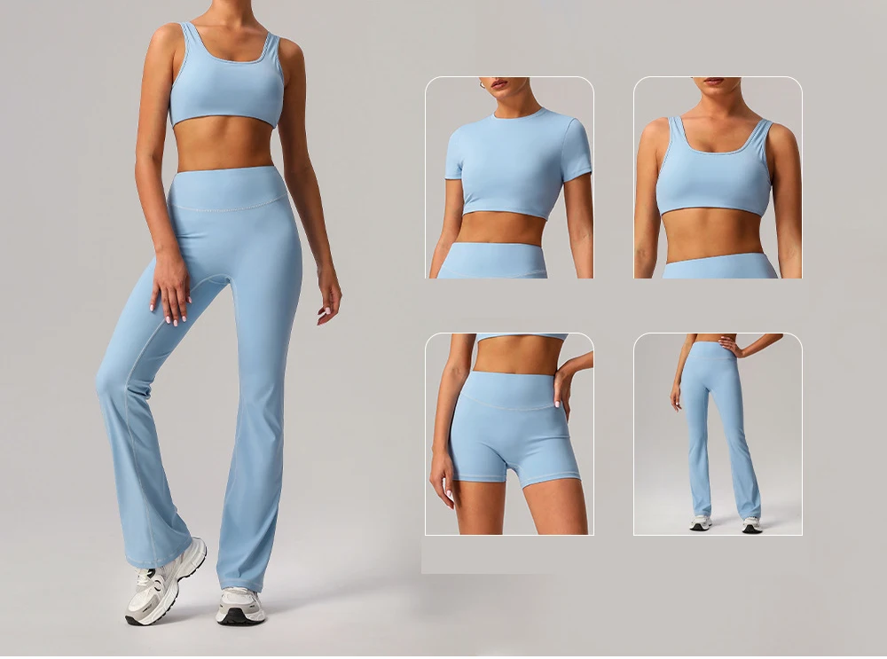 Custom 4 Piece Sets Workout Outfits Fitness Ladies Naked Feeling Built-in Elastic Band Sports Yoga Sets