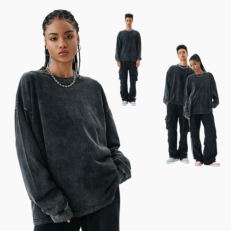 100% Cotton Heavy Regular Sleeve Oversize O-Neck Print Embroidered Autumn Wash Gym T-shirts