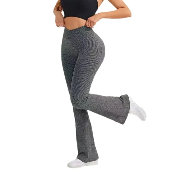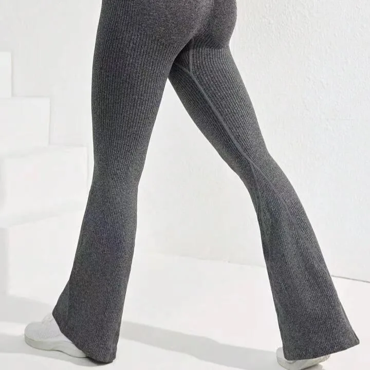 Seamless Fitness V Cut Yoga Flare Leggings Slim Wide Leg Sports Rib Pants Women High Waist Hip Workout Flared Pants