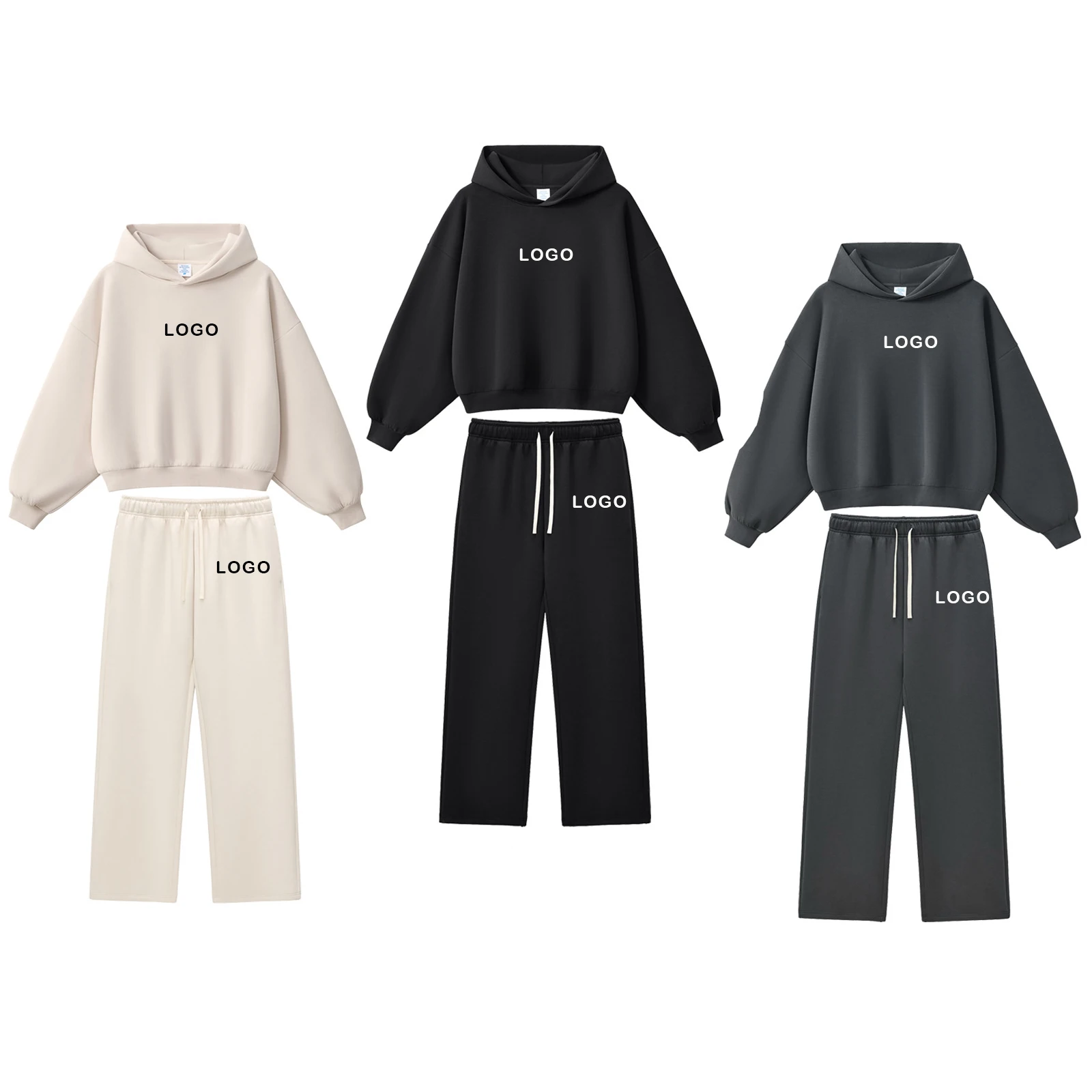 YISHENHON Hooded and Pants Custom Design Unisex Crewneck Sweatshirt Men Wholesale High Quality French Terry Two Piece 445 Grams