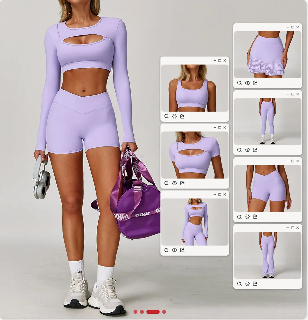 2026 New Women Hollow Bra Sport Wear Gym Fitness Workout Yoga Crop Top V Cut Flared Wide Leg Pants 7 Piece Yoga Sets